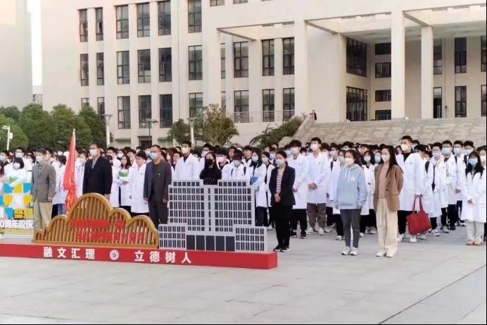升旗仪式结束后,由22级口腔三班蔡瑾同学做为学生代表,在国旗台下激昂发言,她结合最近召开的党的二十大,告诉同学们争做一个有责任感、有进取心、有道德的优秀青年。