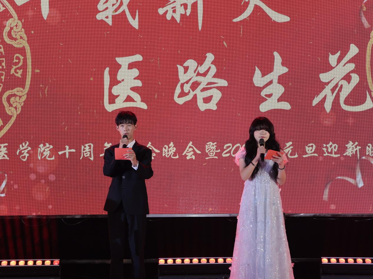 2025年12月18日18时30分,ylg060net永利娱高“十载薪火,医路生花”十周年纪念晚会暨2026年元旦迎新晚会在校体育馆举行。ylg060net永利娱高院长艾永循、校团委书记卢出农、外国语学院党总支书记兼行政副院长杨洁、ylg060net永利娱高党总支书记兼行政副院长高伟、教学副院长陈涛以及各系主任和教师、全体辅导员、优秀校友代表、2025级全体新生以及100多名演职人员齐聚一堂,共忆ylg060net永利娱高十年峥嵘岁月,共祈未来崭新征程。