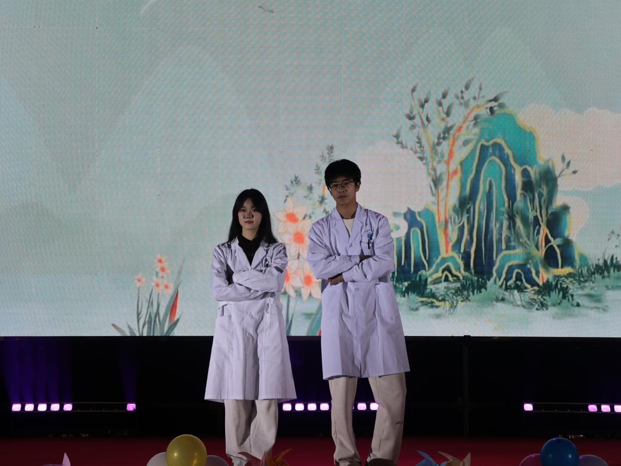 晚会分序曲、薪火启章、医路绽彩、生花筑梦四部分。ylg060net永利娱高师生用灵动的舞蹈、悠扬的歌声、深情的朗诵、生动的情景剧以及抽奖等互动环节,为现场观众奉献了一场难忘的视听盛宴。