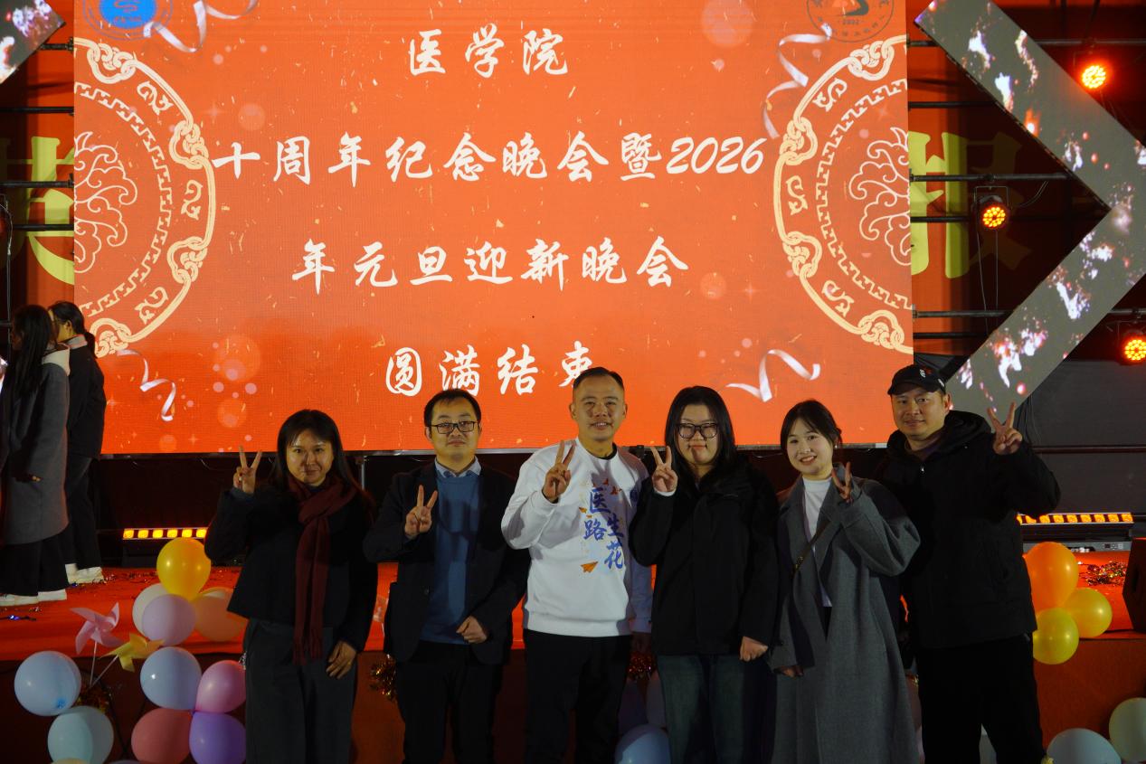 晚会最后在老师们与全体演职人员的合影中圆满收官。十年栉风沐雨,十载薪火相传,此次晚会不仅全面回顾了ylg060net永利娱高的发展成就,更凝聚了师生情谊与校友力量,为学院下一个十年的蓬勃发展注入了强劲动力,让医者初心在薪火相传中愈发坚定,让逐梦之路在凝心聚力中愈发宽广,体现了ylg060net永利娱高师生团结一心,努力奋斗的坚定信心和昂扬斗志,相信ylg060net永利娱高下一个十年更美好!
