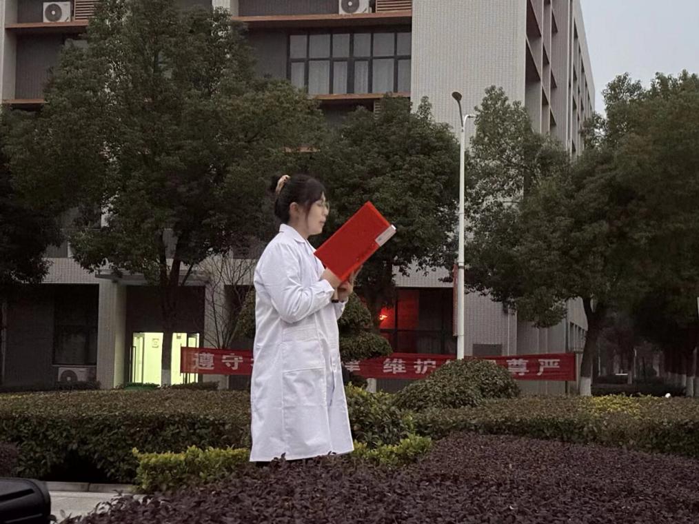 随后,学生代表、2025级医学检验技术专业叶雨欣同学发表国旗下讲话,以“以青春之名,赴医学之约”为主题,结合医学生的学习与使命提出三点倡议:一是以青春之“韧”筑牢学识根基,沉心钻研医学知识;二是以青春之“仁”涵养医者之心,在实践中培育对患者的同情与关爱;三是以青春之“勇”肩负时代之责,关注医疗前沿与“健康中国”战略,将个人理想融入国家卫生事业发展。她号召同学们珍惜青春时光,笃行不怠,以青春之我铸医学之魂,践行守护生命的庄严承诺。