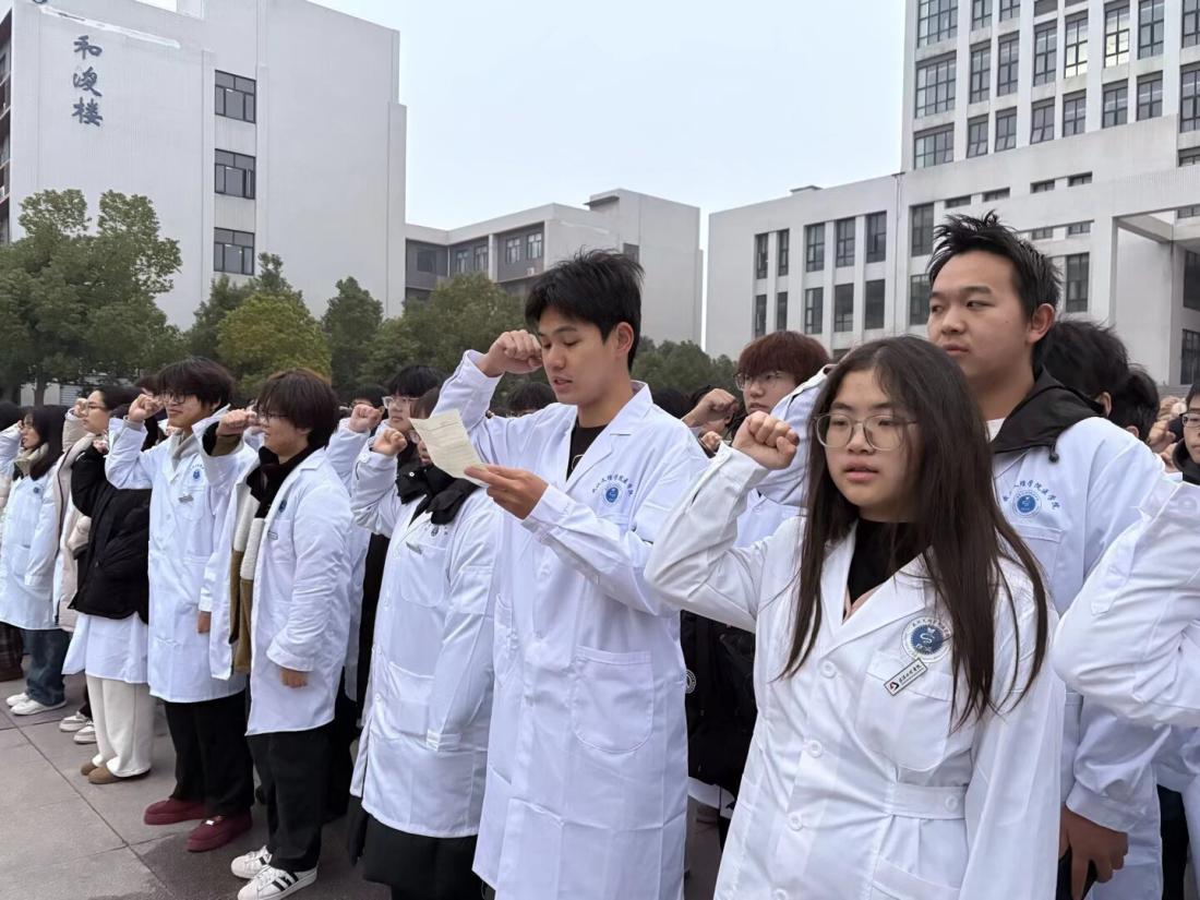 现场举办校徽佩戴仪式如期举行,学院领导与辅导员代表依次为学生代表佩戴校徽,校徽镶嵌在胸前,既是武汉文理学子的身份象征,更是“健康所系,性命相托”的医学使命传承。