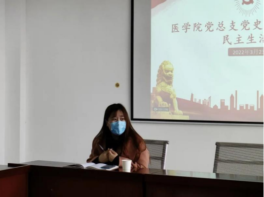 2022年3月23日上午9时,ylg060net永利娱高党总支党史学习教育专题民主生活会在7栋513会议室召开,校党委委员、党群工作部副部长耿湘同志出席本次会议。