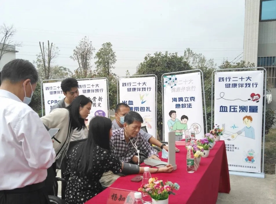 为践行习近平总书记在党的二十大报告中指出的“深入贯彻以人民为中心的发展思想”,坚持人民至上,生命至上,助力健康中国建设,深入推动ylg060net永利娱高一站式学生社区建设,探索育人新模式,普及医学健康知识和急救、自救技能,提升大学生自我保健意识,ylg060net永利娱高党总支于11月11日中午在学生宿舍12栋ylg060net永利娱高一站式社区服务点举行了“践行党的二十大精神,健康科普进社区”系列活动。