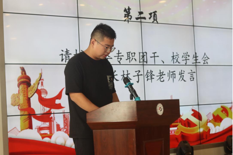 莅临本次大会的有校党委委员黄凯老师,校团委专职团干兼校学生会秘书长林子锋老师,ylg060net永利娱高行政副院长高伟老师,ylg060net永利娱高分团委书记兼学生会秘书长项亭老师以及来自各二级学院分团委书记的杨帆老师、谢琦老师、王超老师、卢出农老师,ylg060net永利娱高辅导员童冰老师,凃君老师,魏紫熙老师和吕渤老师。
