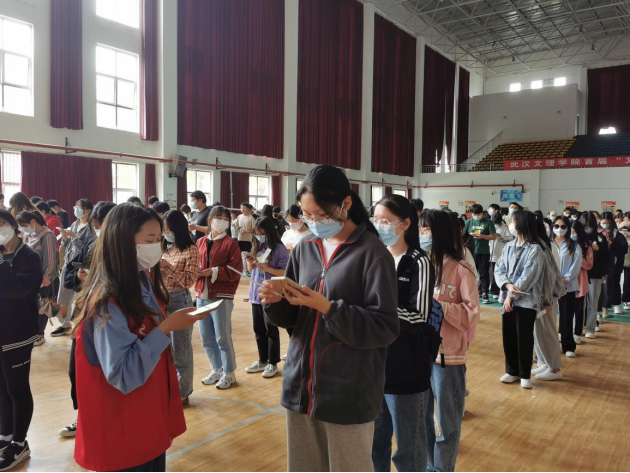 随着大队伍逐渐靠近体育馆大门,看见几名志愿者在负责核酸检测的分组工作,志愿者们分工明确,将整个人流分配地井然有序。明确的分工,让整个过程变得流畅而完整,大大降低意外事件发生的概率,保障活动能井然有序地进行。