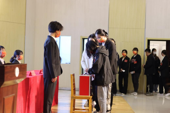 张鑫健同学宣读大会选举办法各学生代表审议并举手表决,通过《大会选举办法》