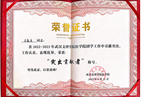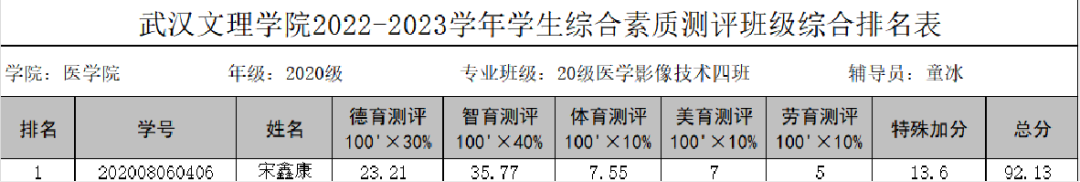 ylg060net永利娱高2020级影像技术专业宋鑫康荣获校2022~2023学年“和润综合奖学金”