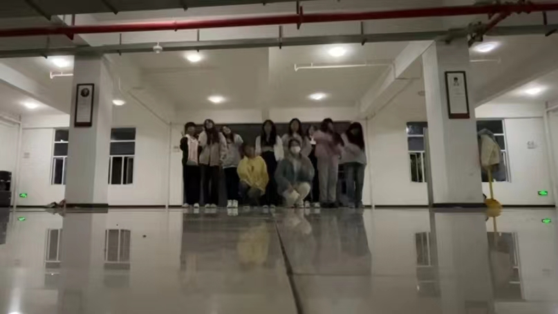 开学后,我们十天排出一个雏形,然后调整队形的整齐度。 在没有排练的舞蹈教室的情况下,我们每天晚上选择挤在小教室一遍又一遍地播放视频扒动作,每天排练到接近23点。