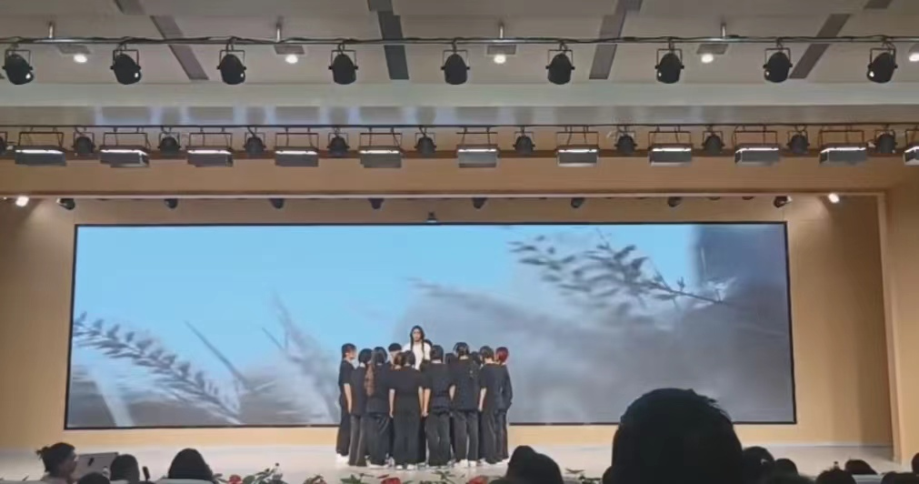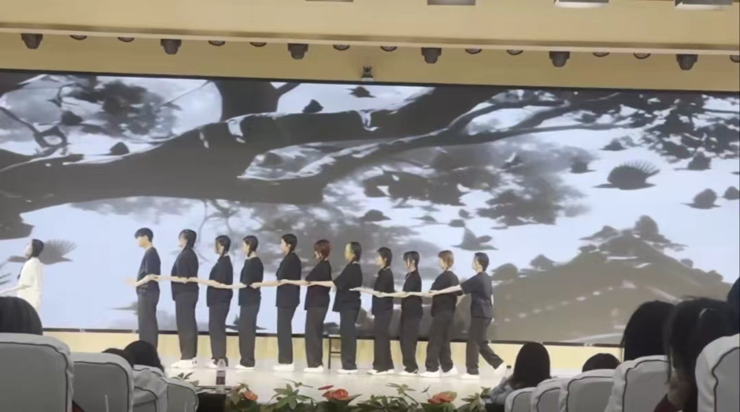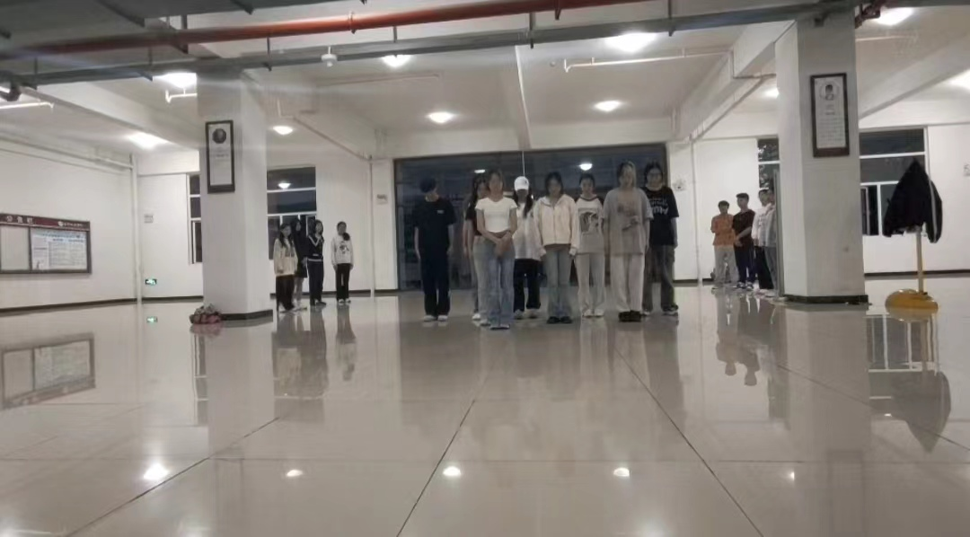 在通过节目第三次审核之后,我们要优化节目的舞台效果,考虑正式表演舞台很大,需要更多演员,于是我们再次宣传号召并挑选8名同学参与辅助我们的团队并加入排练。