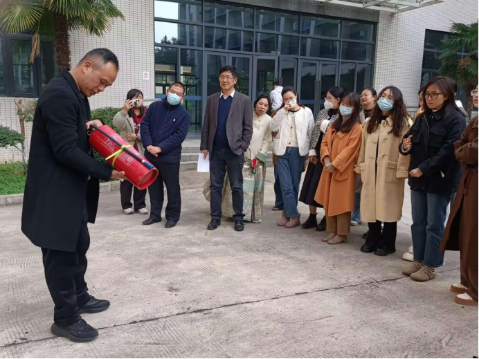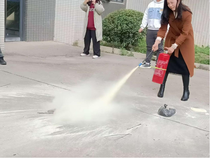 会后,全体教职工移步至6栋楼下,高伟书记现场进行了灭火器的操作演示。学院教职工积极主动拿起灭火器,按照正确的使用方法和灭火步骤进行实操灭火。大家严肃认真,边学边练,通过亲身体验掌握灭火要领。