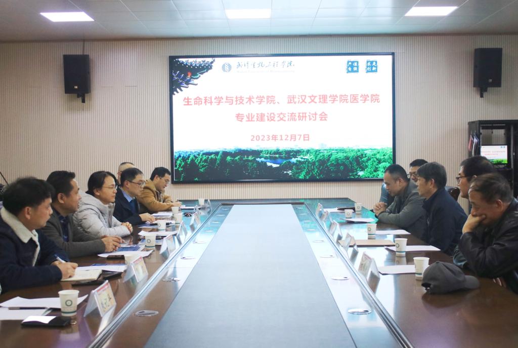 14点,060net永利与武汉生物工程学院学科、专业建设交流会在武生院1栋东1310会议厅召开。武生院副校长董妍玲、教务处副处长廖自能、生命科学与技术学院名誉院长李毅、生命科学与技术学院医学检验技术专业学科带头人徐金华和生命科学与技术学院党总支常务副书记周罗、副院长易凯和涂邵勇、医学检验专业教师朱记平、李么萌、李响与艾永循副校长一行进行了交流座谈。