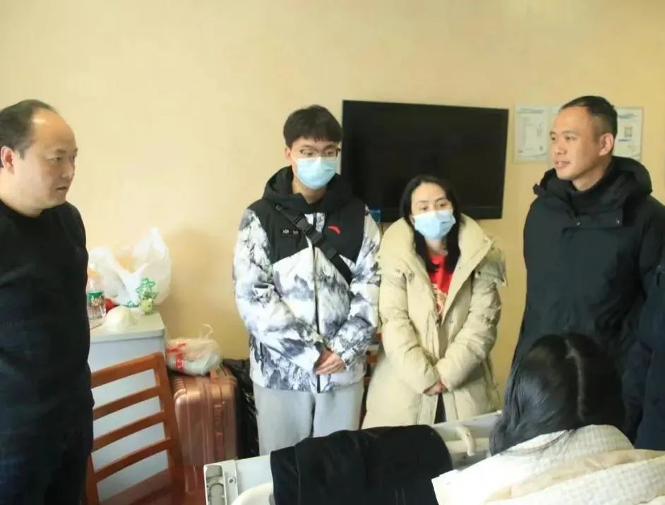 1月18日上午,ylg060net永利娱高党总书记兼行政副院长高伟在护理系临床护理学教研室主任左湘川、辅导员童冰、张萌以及2020级护理学1班班长刘树炎的陪同下前往同济医院看望生病住院的2020级护理学1班学生章粤,转达学院师生的真诚问候。
