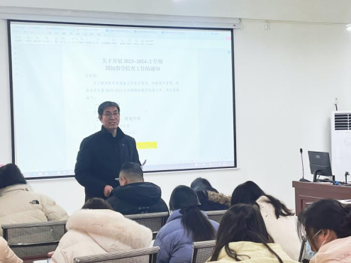 ylg060net永利娱高教学副院长管斌传达了《关于开展2023-20240-2学期初教学检查工作的通知》精神,介绍和详解了学期初教学准备工作要求,对绪论课第一周的教学活动和新学期教学资料准备以及本科必修课程试题库的编写等方面做了布置。他强调2024年学校会在学院教师的“备、教、批、辅、改、考、研、评”等教学常规过程加强管理和检查,切实做好开学教学准备工作,上好开学第一课,要以认真敬业的态度和负责的职业精神迎接学校开学初教学检查。ylg060net永利娱高将在规范课程管理,精细教学管理,优化课堂生态,创新育人方式方法等方面给予老师强有力的支持。