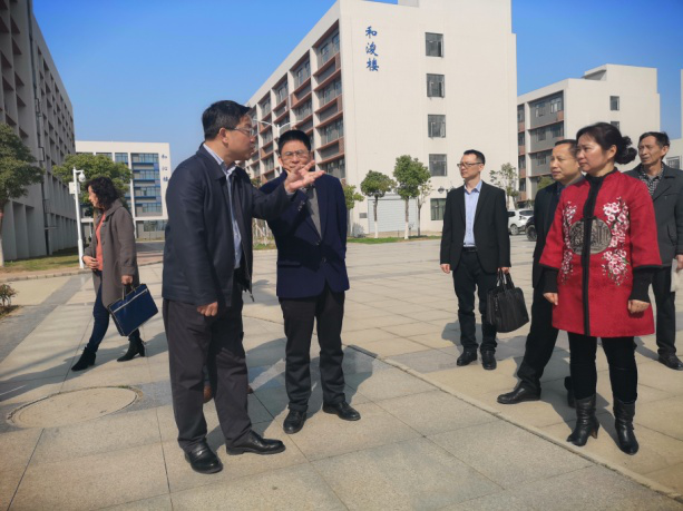 张芾主席及学校领导陪同陈世刚主席参观学校并现场指导校园建设工作