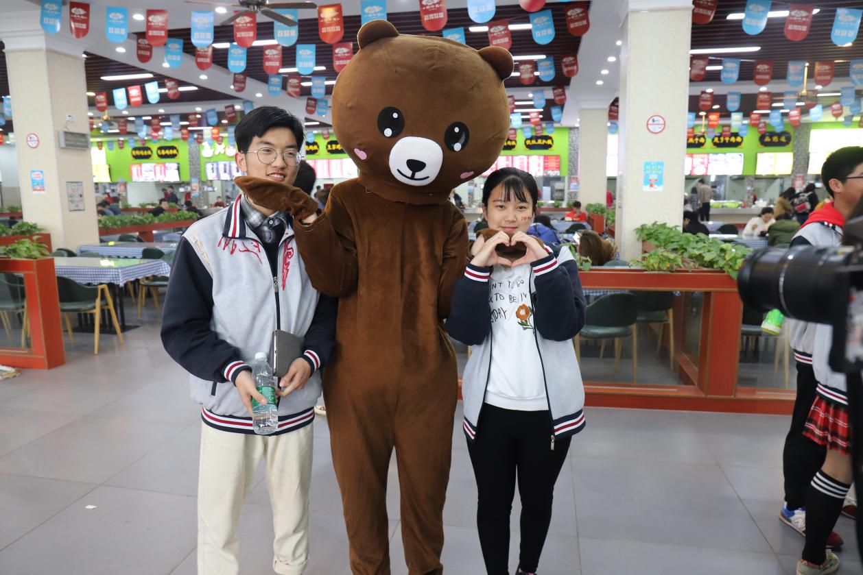 随后,三中的师生们来到我校升旗台,全体师生整齐的站在两侧。我校身着军装的国旗护卫队成员站的笔直,整齐划一的走向升旗台,脚步声在我们耳畔声声作响,让参观的师生不禁感叹我校国旗护卫队的英姿与神采,深受当时场面的震撼。在文理,令人震撼的不止有国旗护卫队,还有文理的篮球赛。来到体育中心,三中的同学们观看了我校管理学院与人文艺术学院的篮球比赛,虽只停留了片刻,但急促的脚步声,周围不灭的呐喊声,一声又一声的击鼓声仍能感到热血澎湃。如果说在体育馆使他们感受到的是运动的魅力,那么走进大学生活动中心,我们将感受到“百花齐放”的氛围。在这里,各社团积极开展的多种活动,吸引了黄陂三中的师生驻足观看。