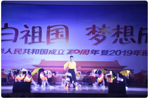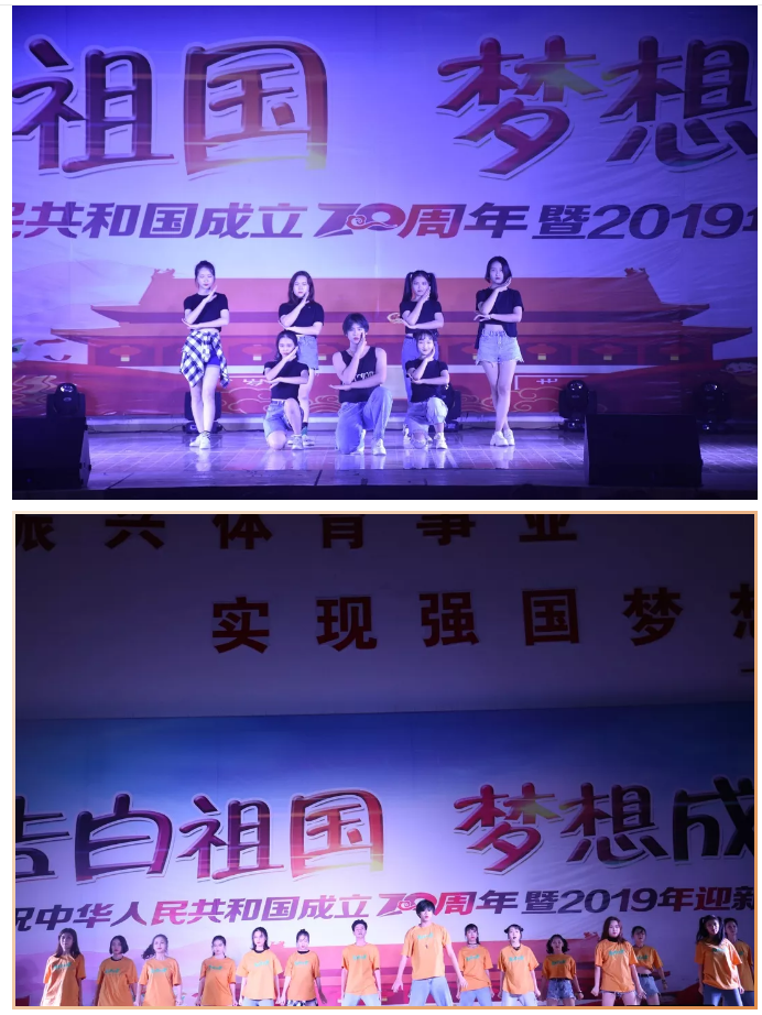 无独有偶,一场由体育学院的运动健儿们用他们独有的艺术表现力踏出一场《站在山岗上》的壮美舞蹈,刚健的节奏与体院的骄子们矫健的雄姿交相辉映,将祖国70周年的豪迈征程浓缩进了短短几分钟的舞蹈中,其振奋人心的内核却更显的浑厚大气。