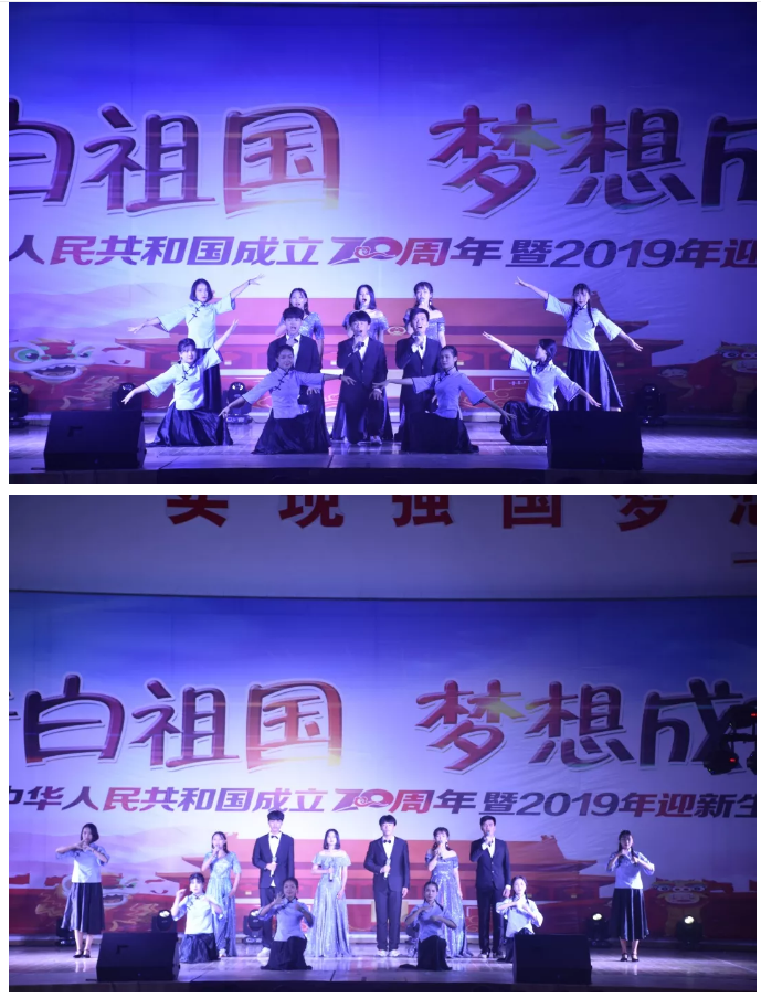 时光飞逝,快乐的时光总是如此短暂。晚会也快进入尾声,师生大合唱《我和我的祖国》是校团委为了认真贯彻《湖北省高等学校“三全育人”综合改革方案》,做好我校学生思政工作,引领广大同学“听党话 跟党走”,向伟大的祖国七十华诞献礼,在九月开展“青春告白祖国”系列活动中的一个。让我们在举国同庆之日来临前夕,为祖国喝彩,为中华骄傲!