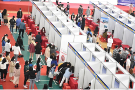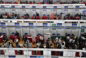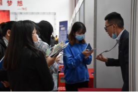 10月14日下午1时30分,招聘会正式拉开帷幕。现场人山人海、求职气氛炽热非常。