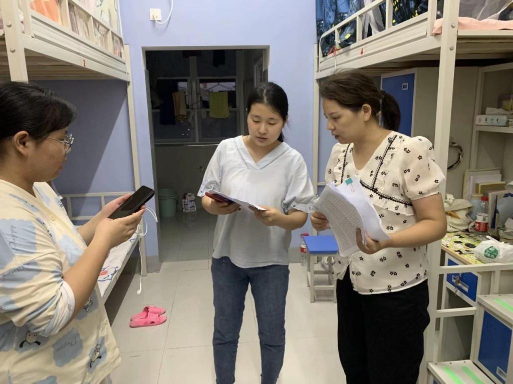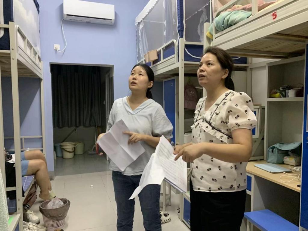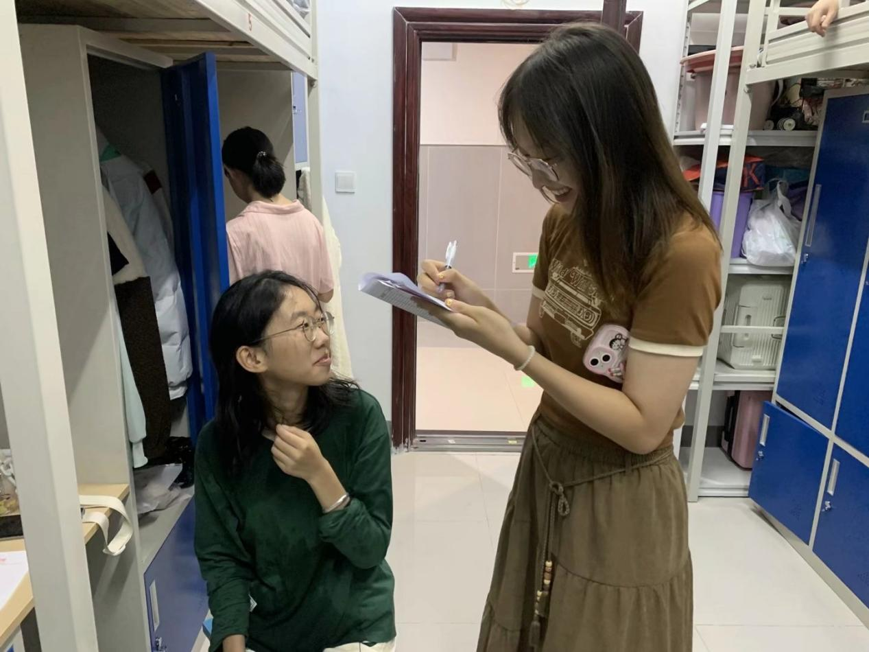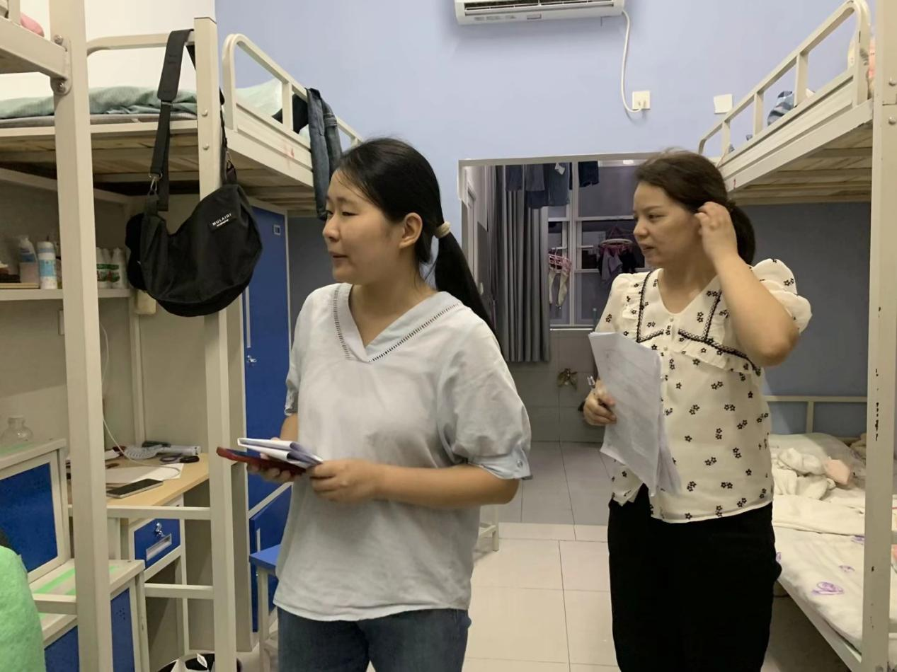 汪颖琦、黄婷婷老师检查新生入住情况并与新生交流意见