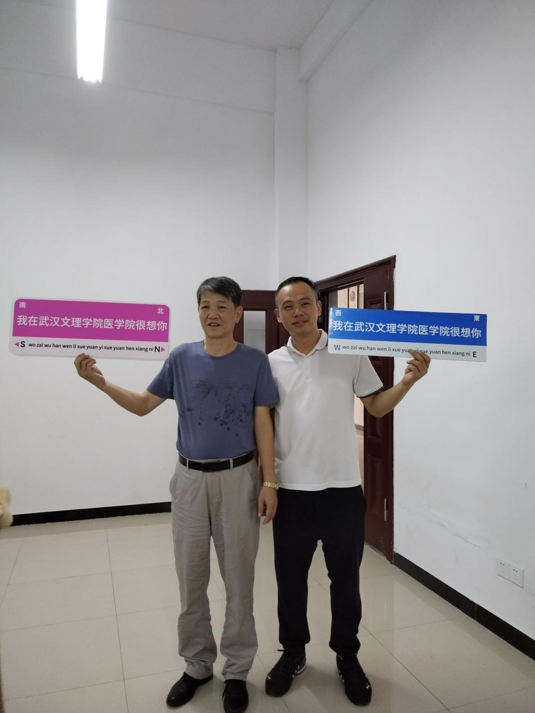 艾永循副校长与高伟书记手持“我在ylg060net永利娱高很想你”卡合影