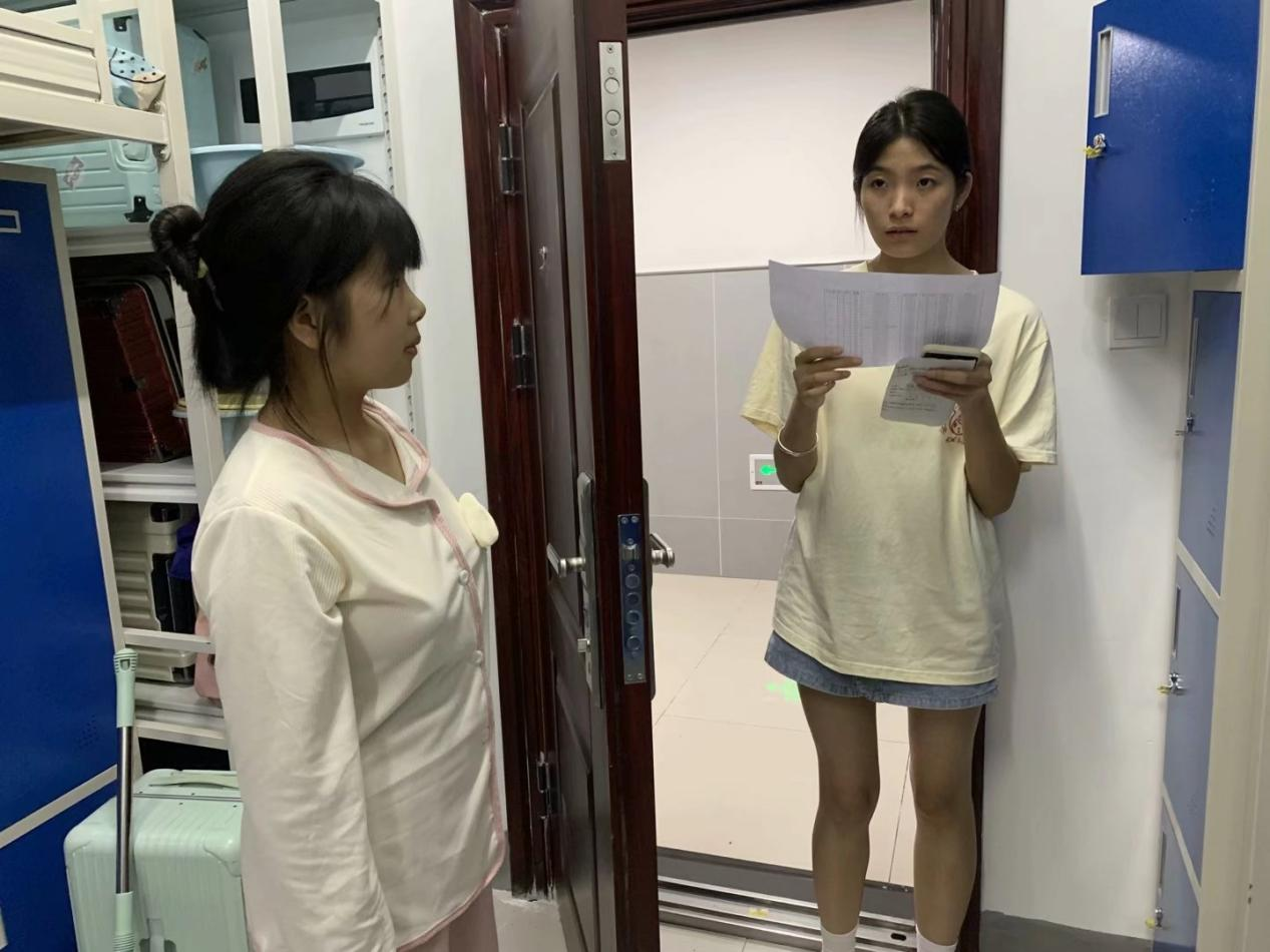 学生的住宿体验直接关系到新生入校生活的质量。ylg060net永利娱高辅导员黄婷婷、汪颖琦、程思、陈意、吴迪、张懿老师带学生干部在24栋、9栋宿舍坚守。他们逐楼层地检查水电设备、耐心与宿舍楼管交流沟通、倾听家长和学生的诉求、叮嘱学生安全、军训安排和防诈骗等事宜以及快速处理各种情况。一声声叮咛,一句句关心,拉近了新生与学院老师和学生干部的距离。