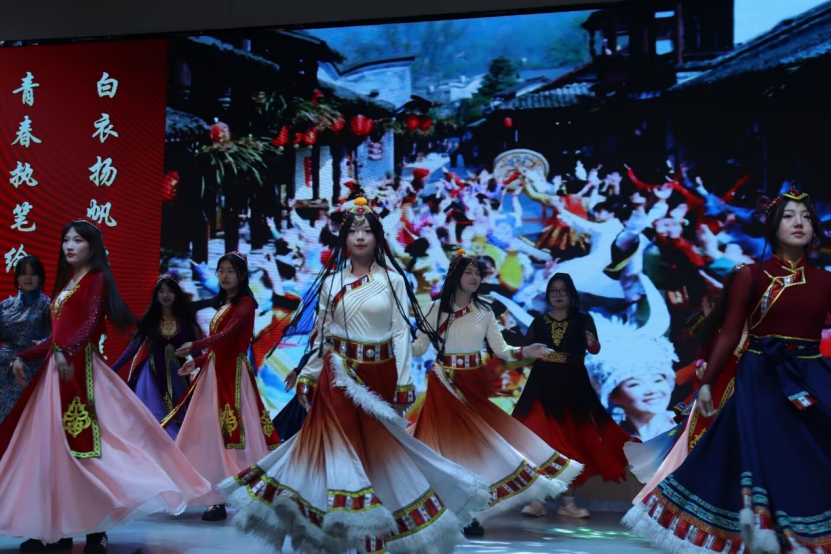 晚会尾声,舞蹈《不丹舞》融合传统与现代元素,展现了多元文化视角下的护理精神。全体师生合影留念,为活动画上圆满句号。