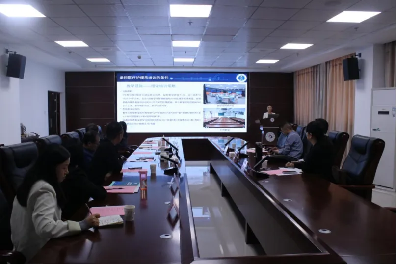 随后,王忆娟做了《060net永利开展护理员培训工作条件及准备情况》汇报。她从ylg060net永利娱高基本情况介绍、承担护理员培训的条件、开展护理员培训工作的准备情况三个方面进行了汇报阐述。汇报中,详实的数据、丰富的图片以及细致的分析充分展现了ylg060net永利娱高优质的师资队伍、先进的教学设施、护理人才培养及培训经验,同时制定了十项护理员培训管理制度,成立了护理员培训管理机构和工作机构,为护理员培训工作顺利开展做了充分准备工作。