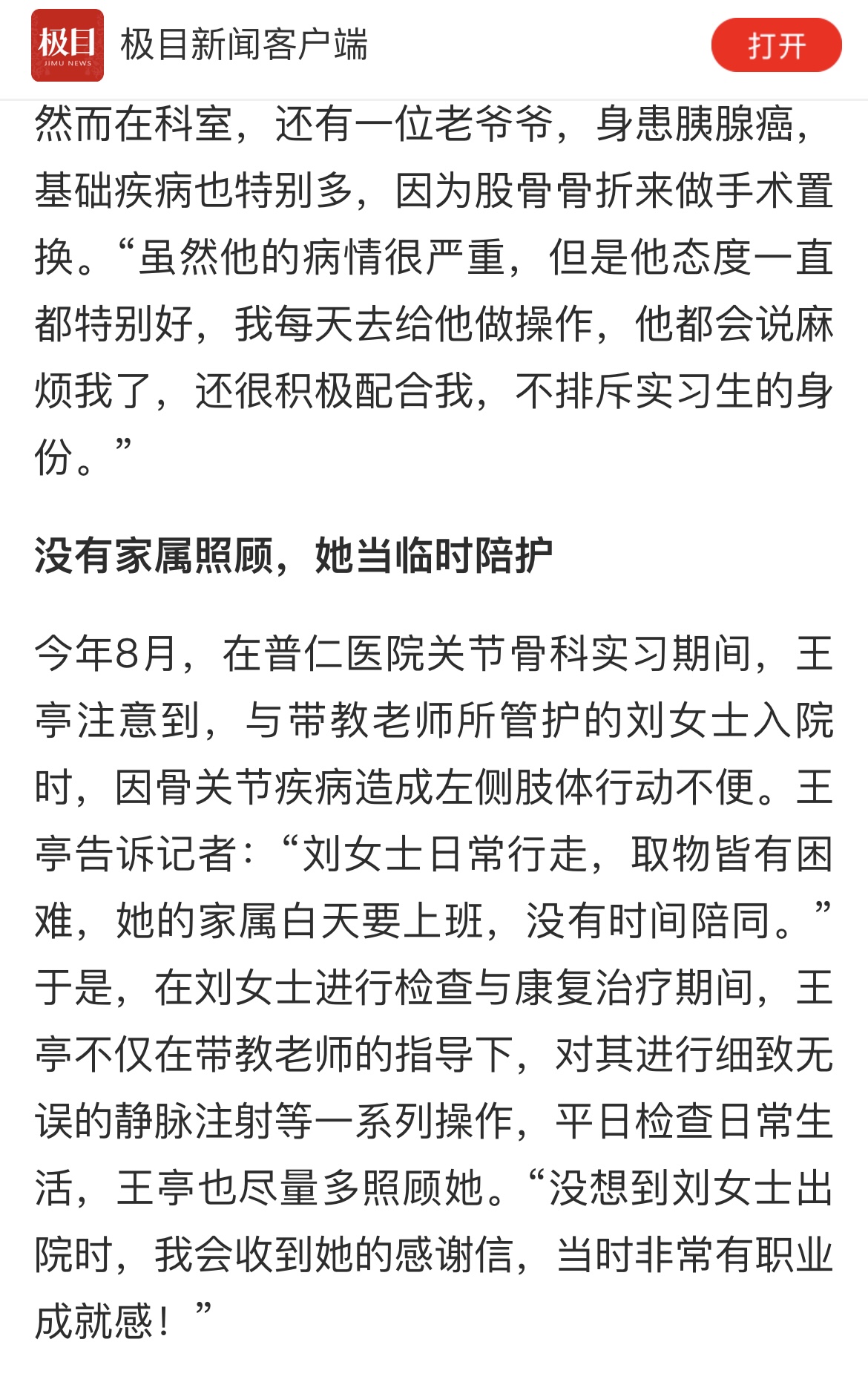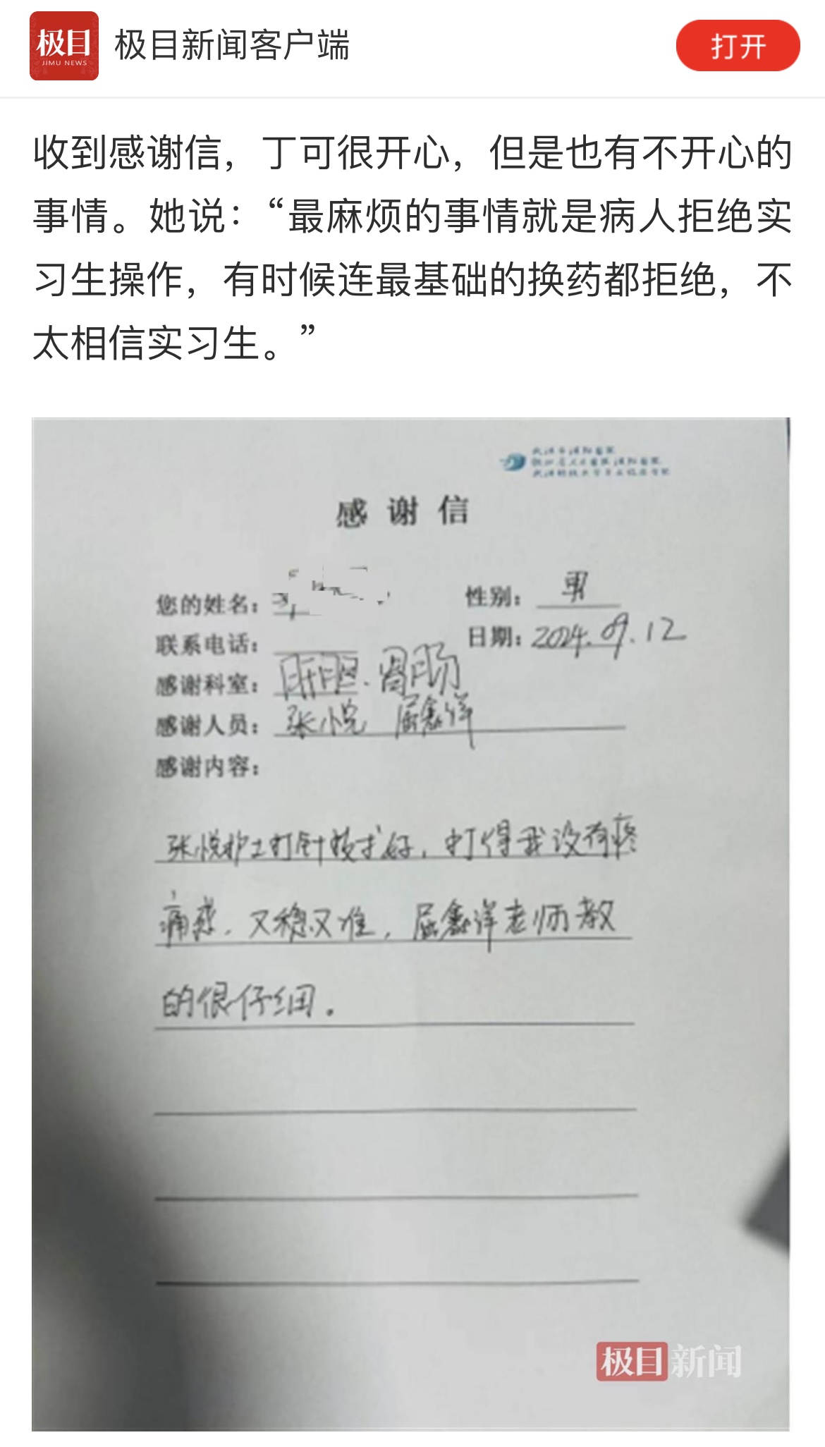 极目新闻报道我校护理实习生收到病患特殊感谢信