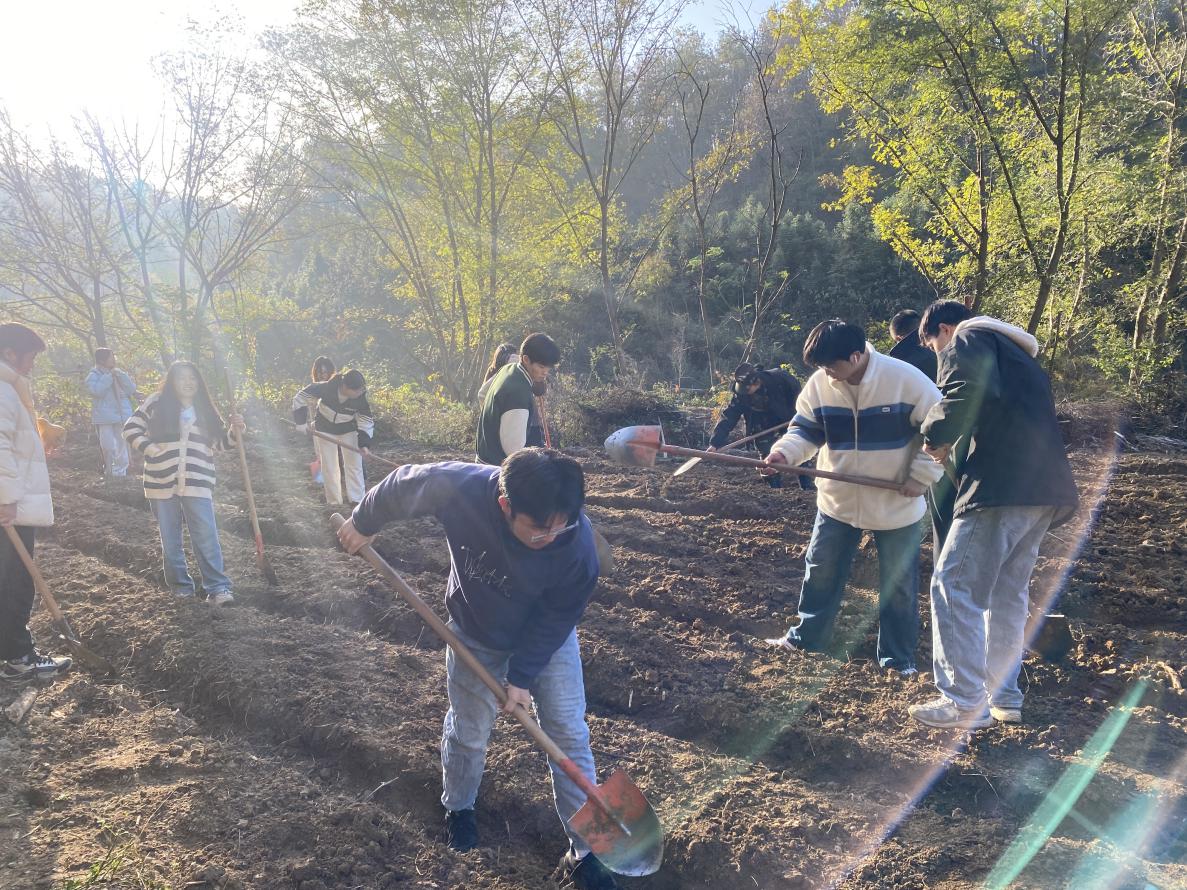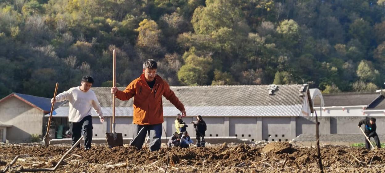 在景区周边区域,学生们手持铁锹、镰刀在研学老师、教官示范指导下率先对区域的杂物展开了清理,随后,一部分同学们相互配合,将一根根原木锯成了合适长途的木柴,一部分同学挥锹铲土,舞镰除草,翻整深挖,让板结的土地变得疏松,为后续种植做好准备,取保农作物能在良好的环境中生长。
