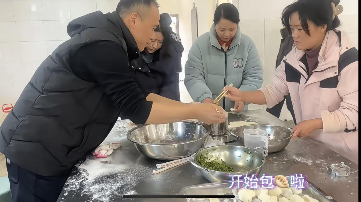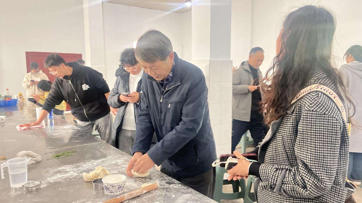 高伟书记带辅导员们与学生一起亲手制作饺子,感受劳动育人的快乐