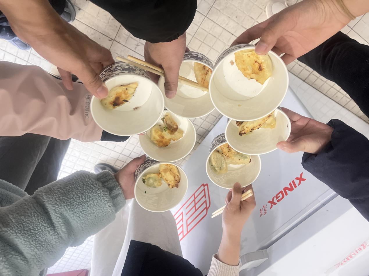 活动现场,面粉、馅料等食材一应俱全,同学们在研学老师的耐心指导下,逐步学习包饺子的技巧,从如何和出软硬始终的面团,到巧妙地擀制饺子皮,再到包出形状各异去饱含心意的饺子,大家热情高涨,积极尝试。整个过程,同学们相互协作,交流经验。当一盘盘热气腾腾的饺子出锅,那农农的饺香与欢声笑语交织在一起,成为了一道温暖而美好的风景线。