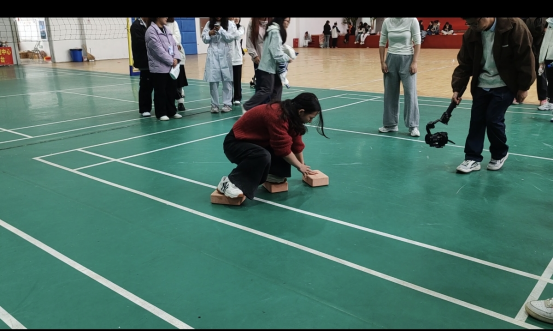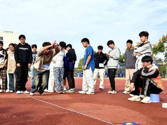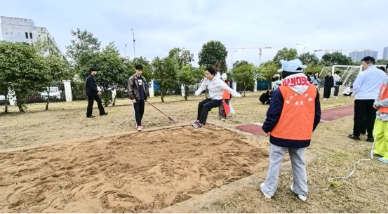 男女混合立定跳远项目,队员们相互加油鼓励,用标准的动作展现医学生昂扬的精神风貌。