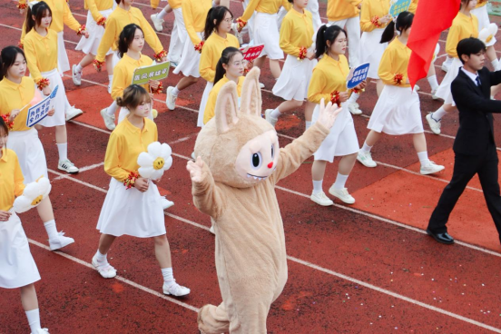 ylg060net永利娱高代表方阵以其独特的设计和表演更是赢得了全场喝彩。66名学生代表身着黄衫白裙、白裤,有的手持“太阳花”,有的手持铭牌,他们脸上洋溢着自信与丛容的微笑,其中卡其色拉布布与青蛙人偶走在方阵两侧更是吸引了开幕式上每个人的目光,也为本次运动会注入了独特的“医学能量”,赢得现场师生的阵阵掌声。