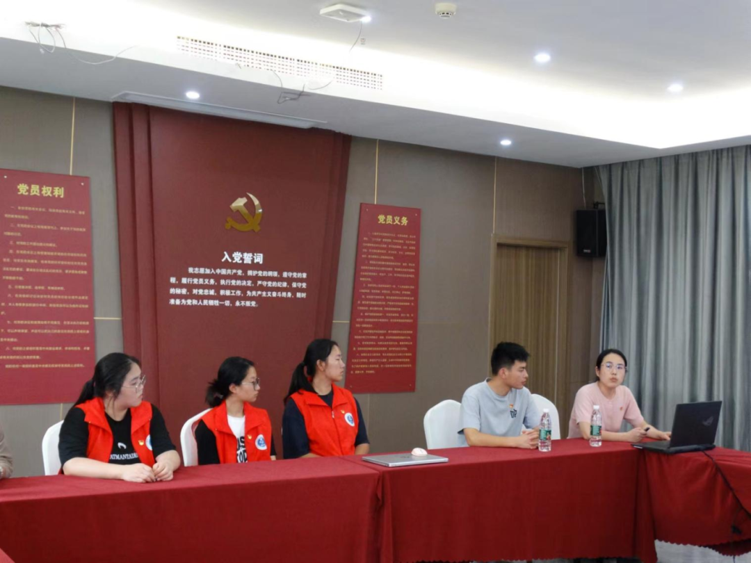为深入学习宣传贯彻党的二十大精神,贯彻落实习近平总书记关于青年工作的重要思想,推进党纪党规学习教育,7月11日下午,ylg060net永利娱高党总支与十里莲华党支部在火焰村乡村振兴服务站为ylg060net永利娱高“医”路前行实践队开展“同上一节党课”活动。活动由ylg060net永利娱高学生党支部书记童冰老师与十里莲华养心谷优秀党员、市场部兼民宿部经理李航主持,十里莲华养心谷优秀党员李晶晶参加。