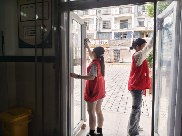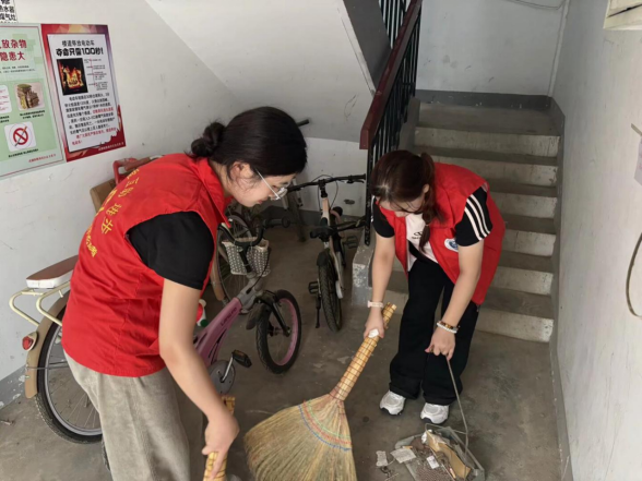 活动首站聚焦社区环境整治,志愿者们兵分两队,前往健康服务站和小区各楼栋,开展“焕彩行”、清洁家园等志愿服务。