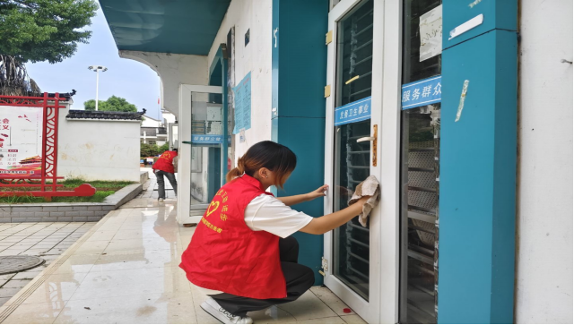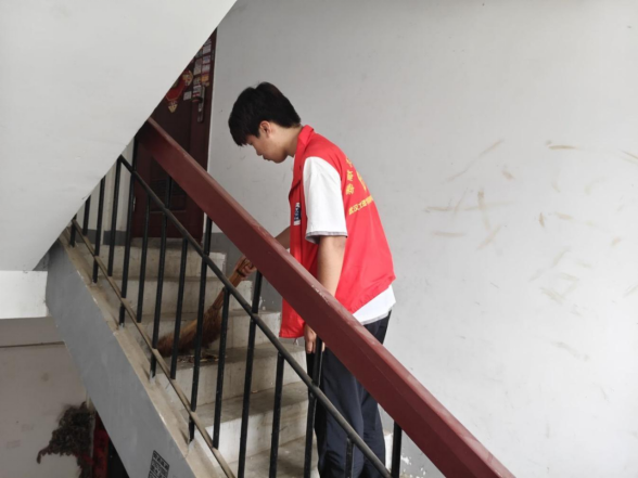 现场志愿者们手持清洁工具,分工明确、高效协作,经过近两个小时的忙碌,让服务站的环境焕然一新,为居民楼栋营造了整洁,舒适的公共环境。