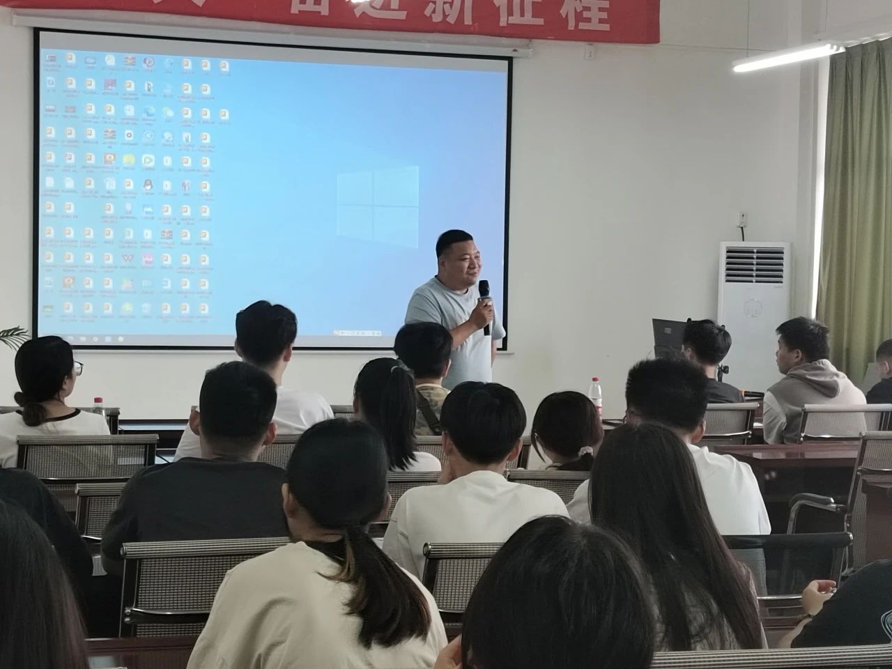 此次在专升本入学教育期间,辅导员张萌老师和吴迪老师也给23级专升本的新同学们对学校的相关情况和各项规章制度进行了讲解,帮助同学们尽快适应新环境。其中张萌老师为了方便同学们领取教材,自己开车帮助同学们把新学期的教材送到12栋网球场进行教材发放为第一周上课做好充分的准备。