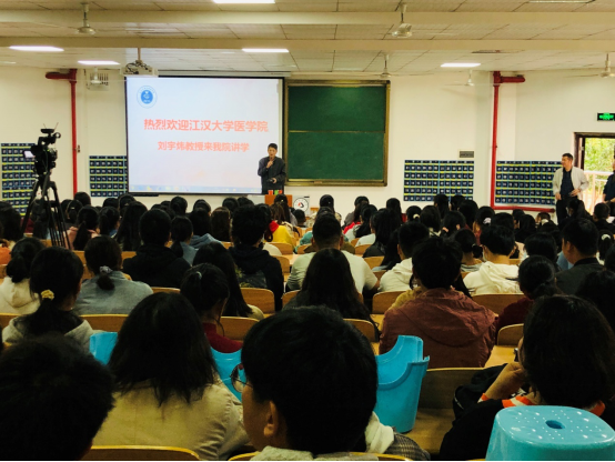 ylg060net永利娱高“护理学”和“医学影像技术”专业的一年级新生们踊跃来到报告现场,可以容纳220位学生的教室座无虚席,由于坐位不够,有不少同学自带小板凳坐到了主席台前两排。我校ylg060net永利娱高艾永循院长出席并主持了本次活动。他首先向同学们介绍了刘宇炜教授。刘教授是医学博士、教授、硕士生导师,从事系统解剖学课程教学二十余年。曾分别到美国University of Medicine and Dentistry of New Jersey和Northeast Ohio Medical University做访问学者和博士后研究;主持完成了多项国家、省、市科研项目;发表SCI论文18篇(其中第一作者和通讯作者11篇);获得2019年湖北省高校课程共享联盟线上线下混合式金课教学大赛优秀教学改革案例,江汉大学2019年“线上线下混合金课”教学大赛一等奖,带领江汉大学ylg060net永利娱高基础医学部获2019年湖北省教育厅湖北高校省级优秀基层教学组织。