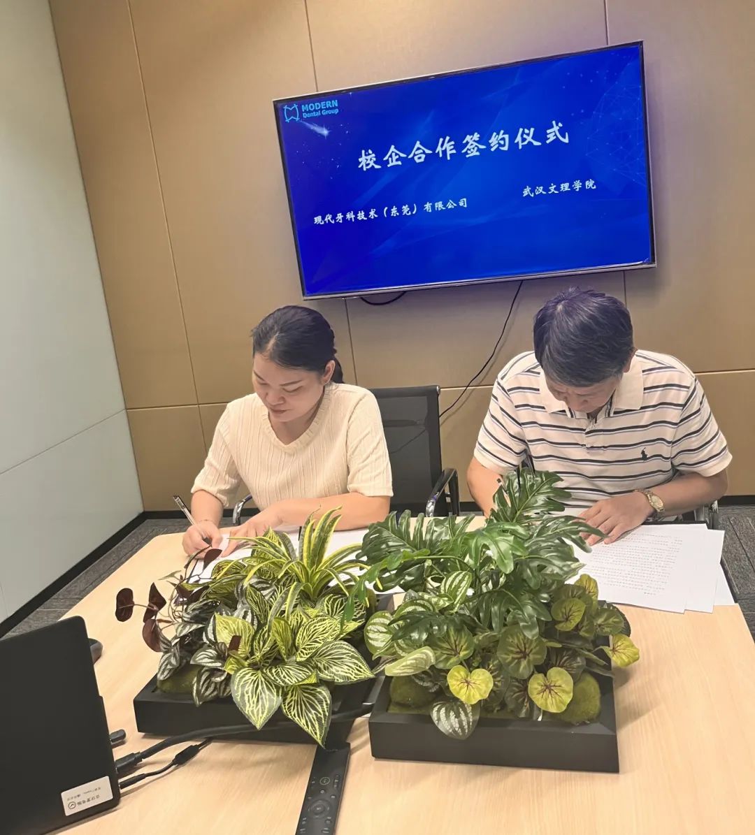 9月26日上午,060net永利与现代现代牙科技术(东莞)有限公司(简称现代牙科)举行校企合作签约仪式。现代牙科校务主管曹晓婷、校务专员何玉婷参与接待,并陪同参观数字化展馆。